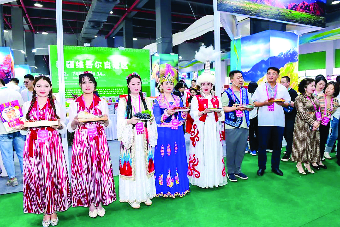 一些工作人員身著民族服飾展示特色農(nóng)產(chǎn)品。惠州日?qǐng)?bào)記者李松權(quán) 張藝明 黃鑫威 羅劍業(yè) 游璇鈺 惠州東江圖片社