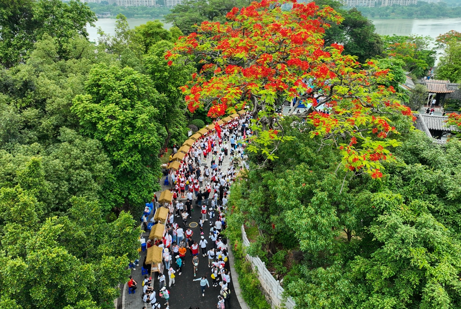 在活動(dòng)中,一大批NPC(非玩家控制角色)以“竹杖芒鞋輕勝馬”的東坡形象出現(xiàn)在人群中,吸引了不少觀眾與之拍照。此次活動(dòng)沿線設(shè)置了多處補(bǔ)給點(diǎn),橫瀝湯粉、蘿卜粄等各種惠州地道小吃讓徒步愛(ài)好者贊不絕口。同時(shí),沿途的互動(dòng)打卡點(diǎn),準(zhǔn)備了飛花令、詩(shī)詞對(duì)弈、投壺?cái)S箸等豐富多彩的小游戲和精彩的文藝演出。