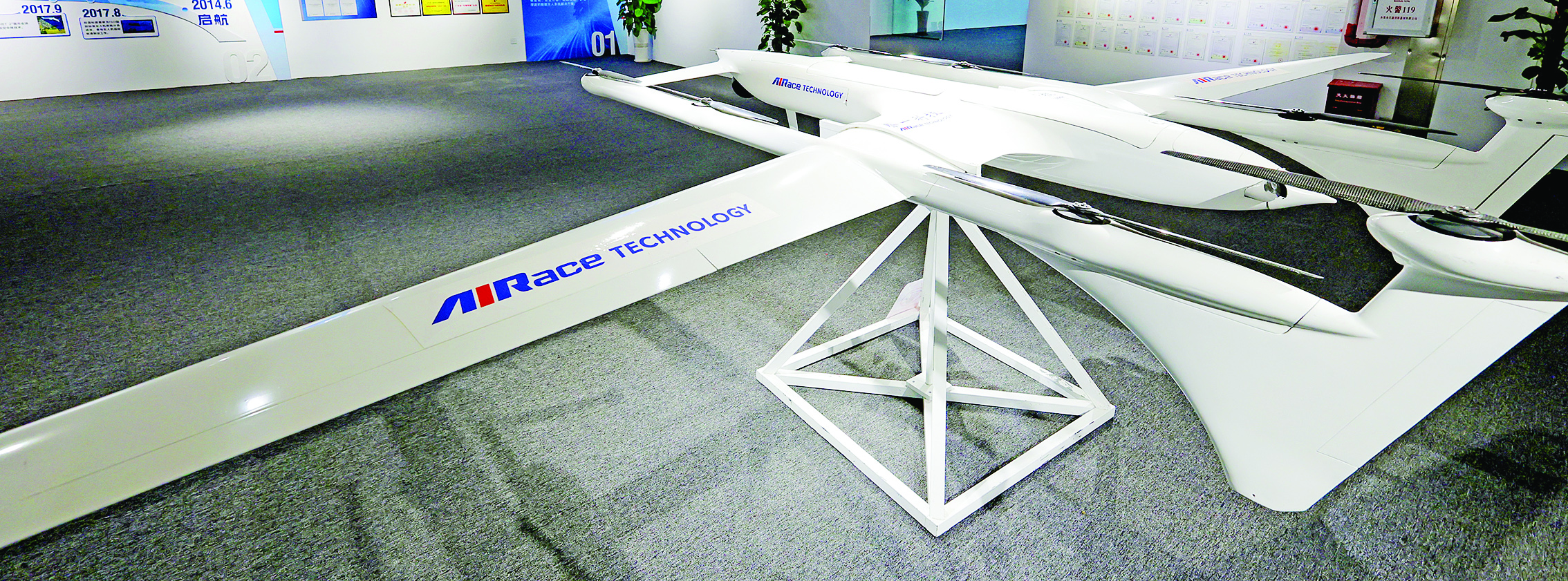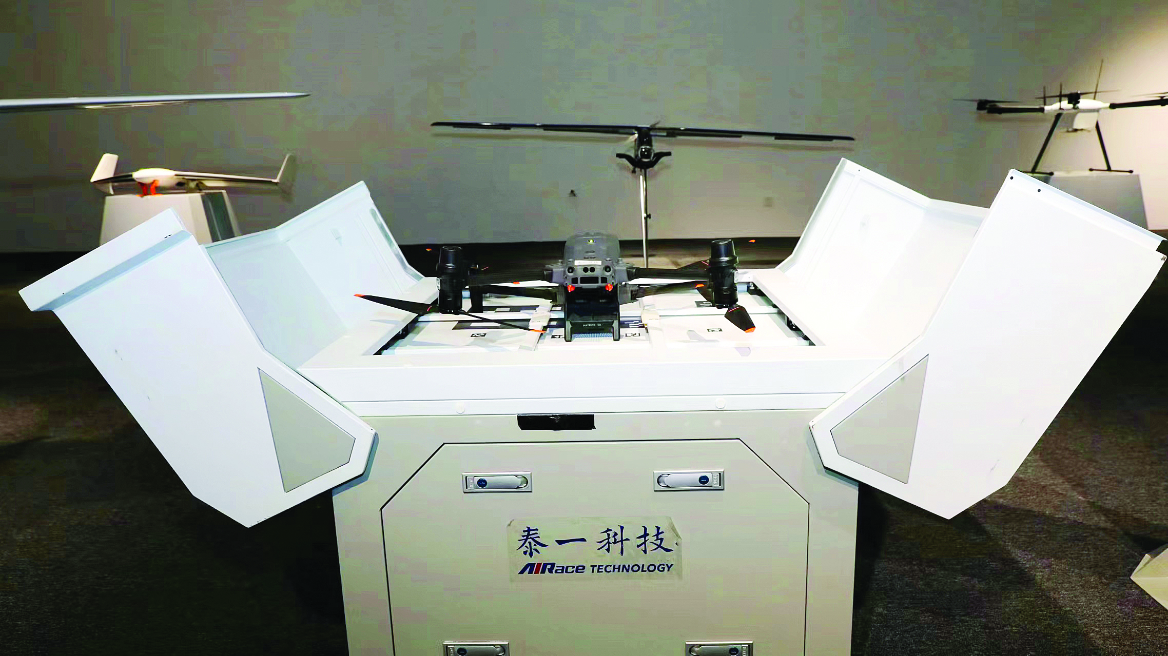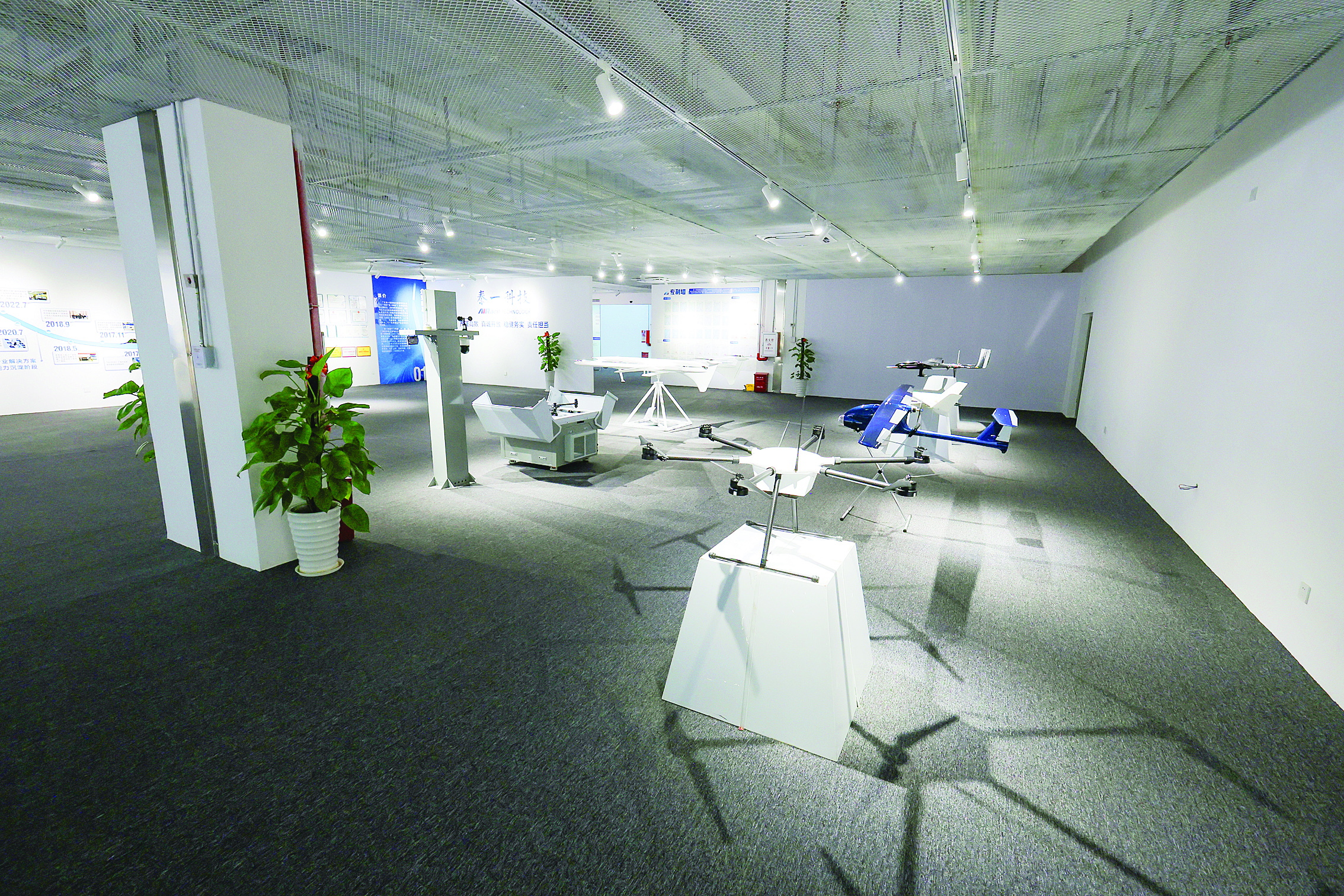 展廳中的無(wú)人機(jī)裝備。