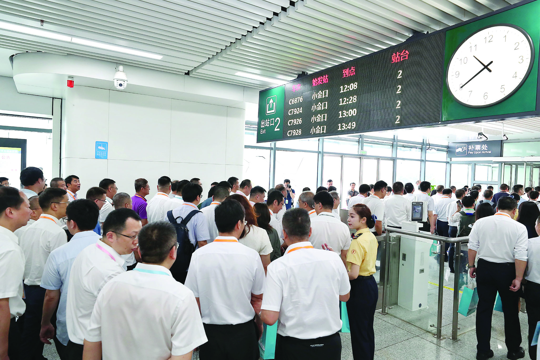 線路全面啟用“站站停+大站快車”公交化運營模式,并執(zhí)行“肇慶站-小金口站”和“佛山西站-小金口站”交路。旅客可通過站臺、站廳信息顯示屏、車站廣播的列車信息,區(qū)分“站站停”和“大站快車”,現(xiàn)場還有車站工作人員持手舉牌指引。