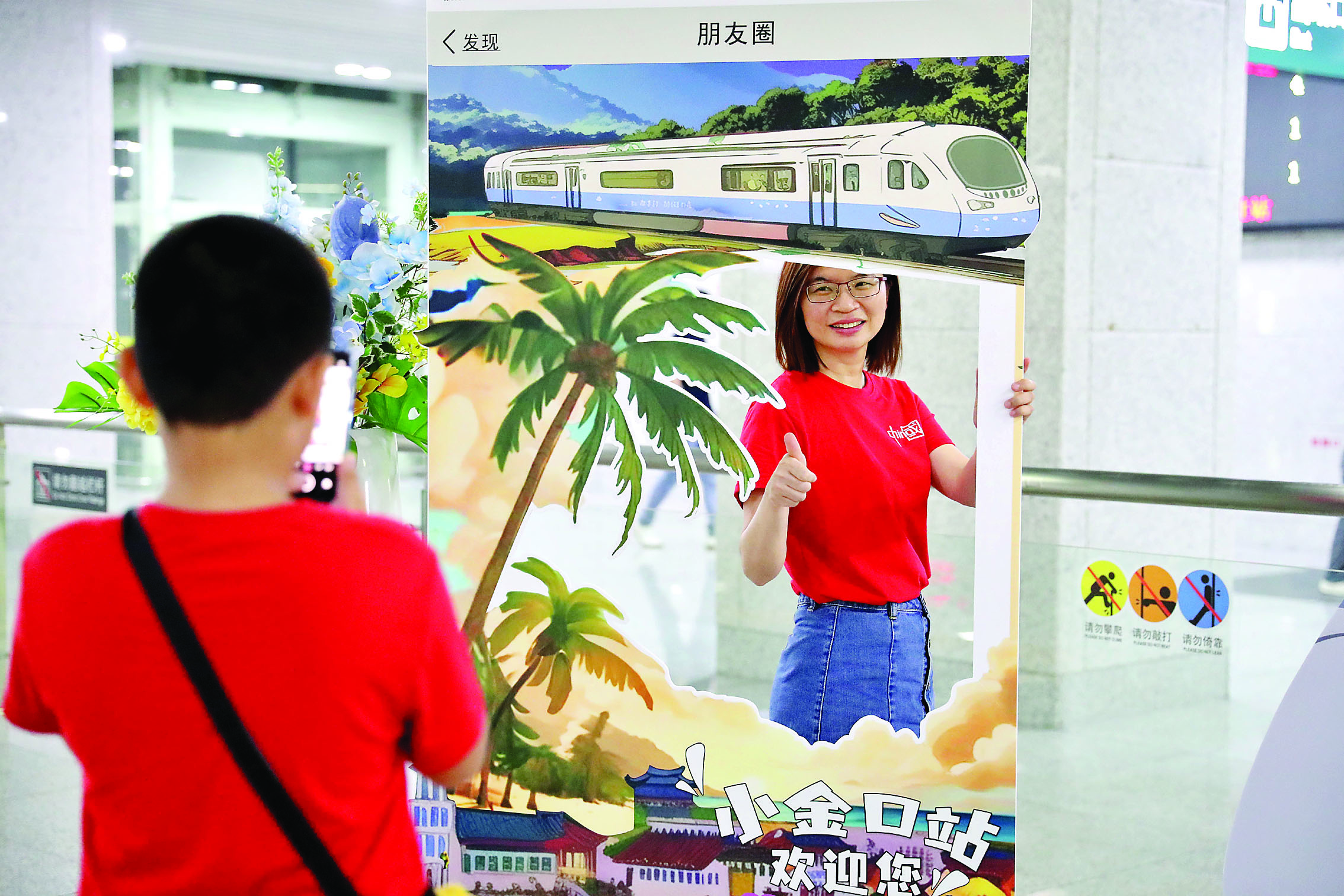 旅客在小金口站打卡點拍照留念。