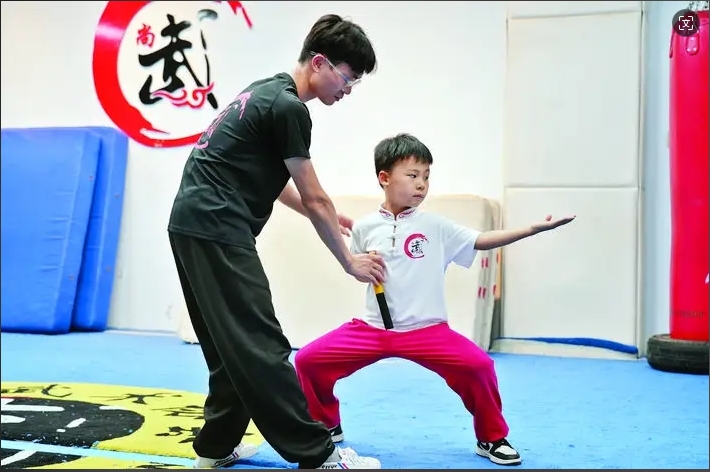 教練指導(dǎo)小孩練習(xí)李家拳。