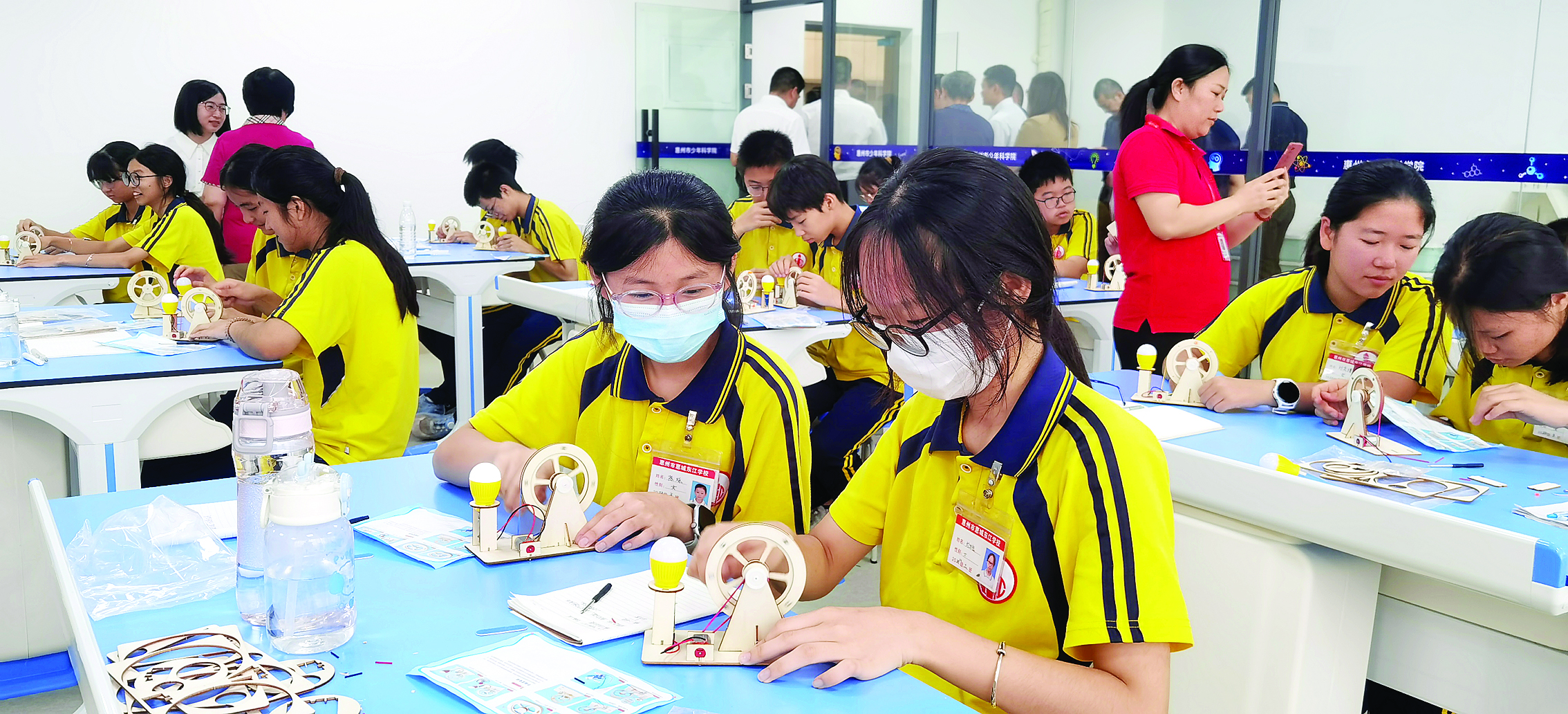 學(xué)生在惠州市少年科學(xué)院總院參加科創(chuàng)科普實(shí)踐活動(dòng)。