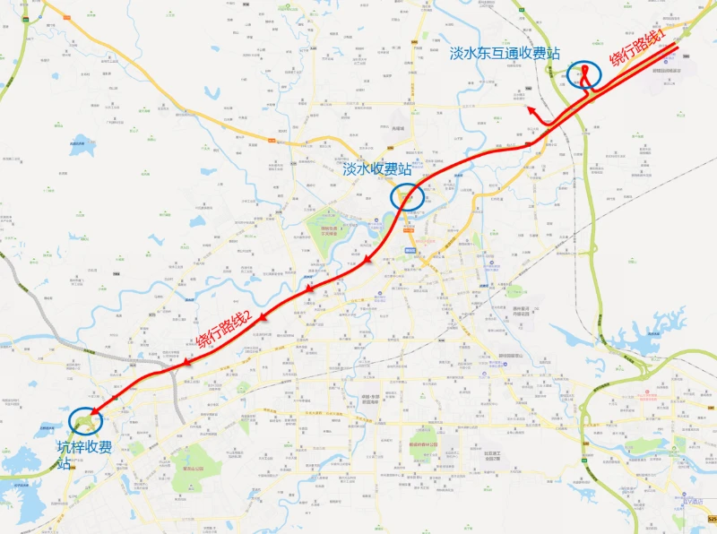6月7日09:00至8月7日06:00期間,封閉G15沈海高速公路淡水收費站深圳方向下行匝道,禁止車輛通行。建議原從沈海高速淡水收費站深圳方向下行匝道出收費站的車輛,可選擇從坑梓收費站或淡水東收費站下高速。