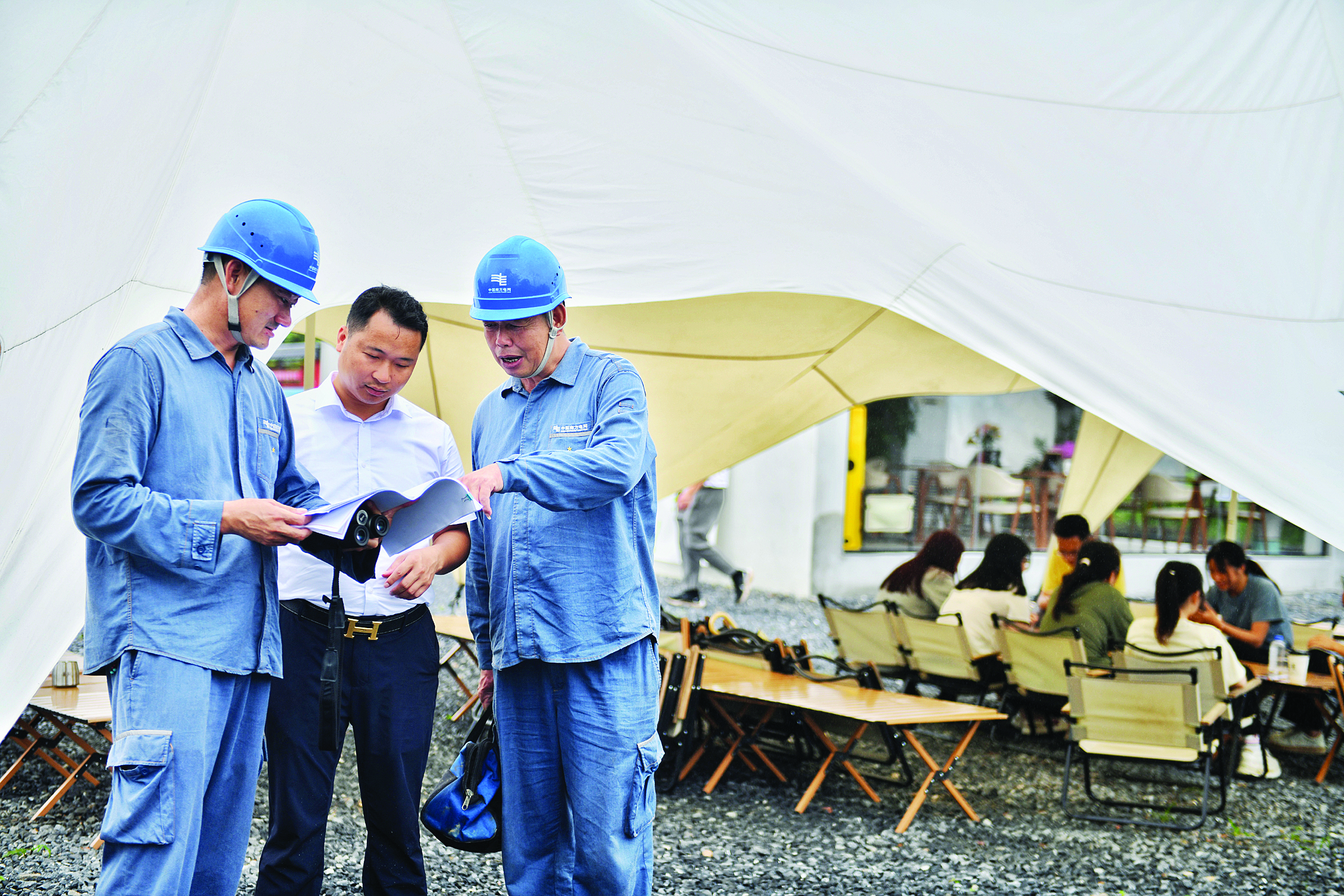電力運(yùn)維人員在墨園村露營(yíng)營(yíng)地了解用電需求。