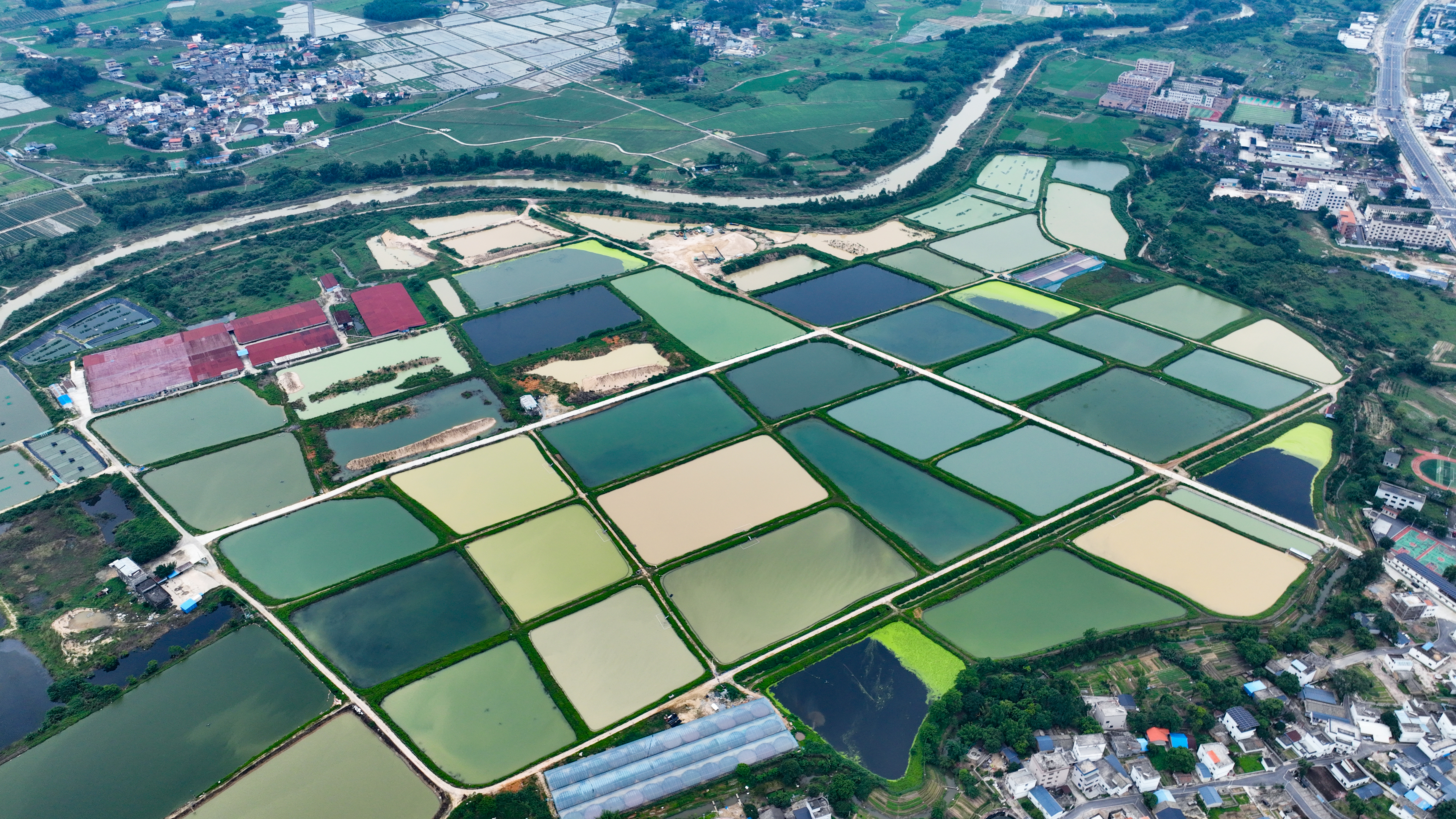 山水如畫,風(fēng)景如詩。在龍門縣龍?zhí)镦?zhèn)西埔村,一望無際的田野中嵌入了一塊碩大的“眼影盤”,它由數(shù)十塊形狀各異的水塘拼接而成,在和煦陽光的映照下淡雅明麗,仿佛期待著有人用它裝點(diǎn)山水。