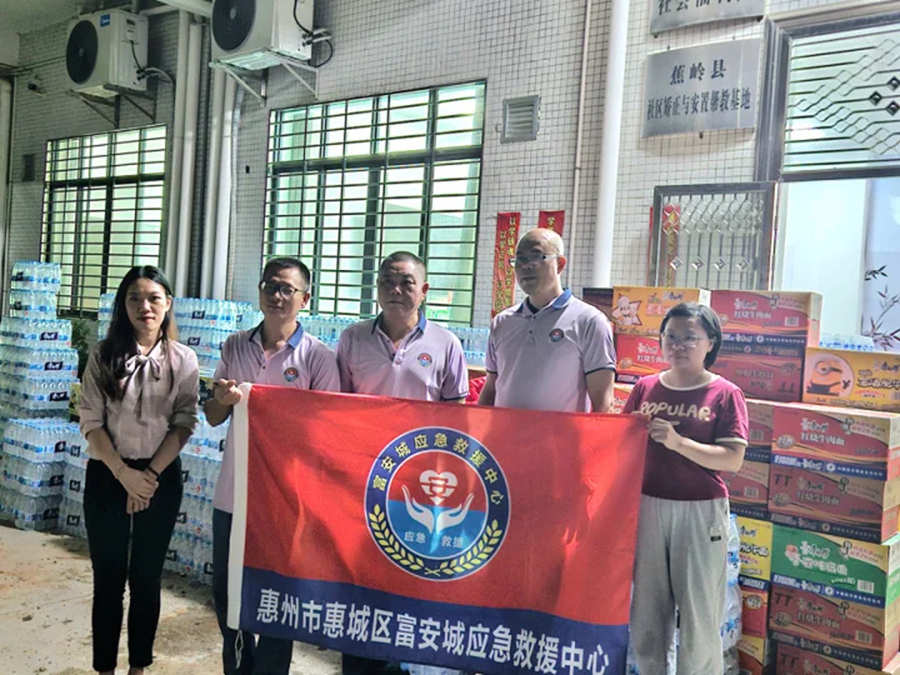 惠州市惠城區(qū)富安城應(yīng)急救援中心向梅州受災(zāi)地區(qū)捐贈近2萬元物資。