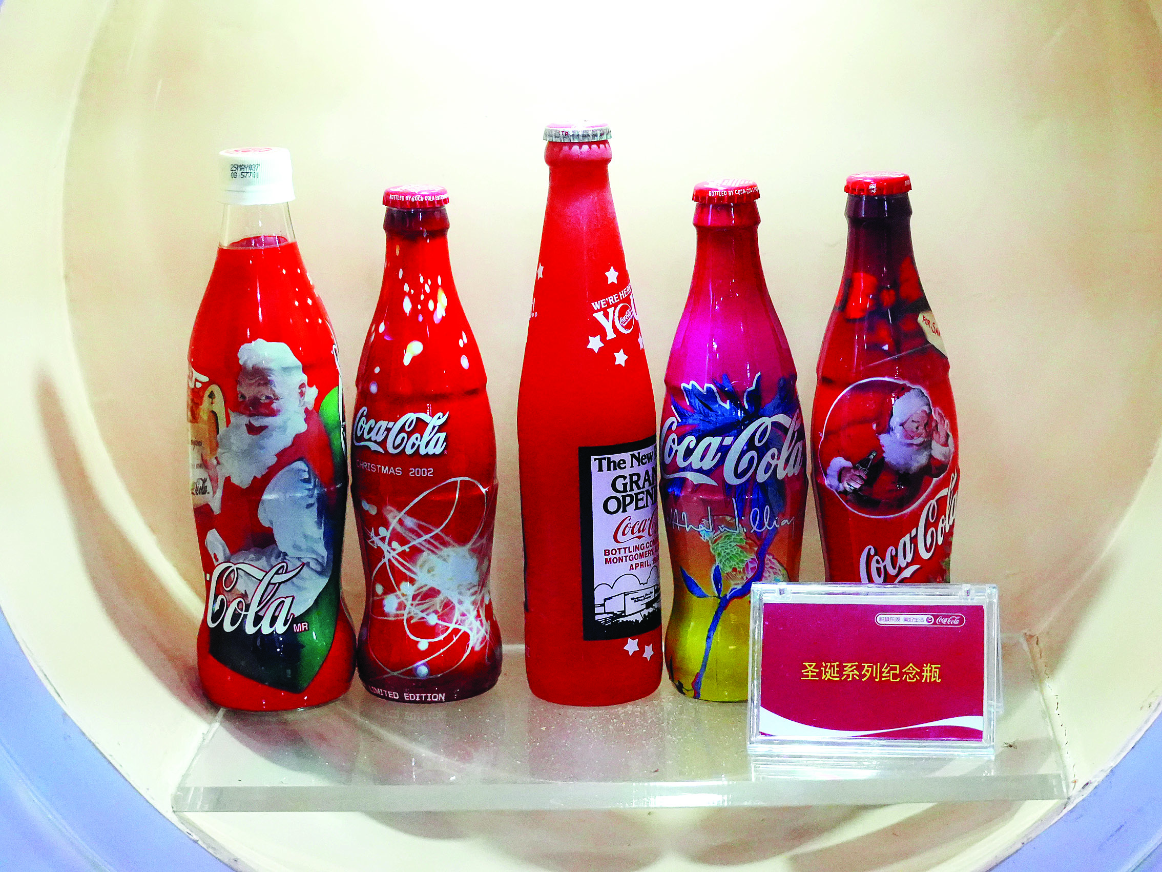 記者看到,這些從世界各地收集而來的瓶瓶罐罐上,記錄著重要賽事、紀(jì)念日、游戲主題等,而且大多是限量版,具有紀(jì)念價(jià)值。四季瓶、新春祝福罐、地標(biāo)瓶……形形色色的可樂瓶別具一格。清明上河圖、國(guó)風(fēng)藝術(shù)、城市風(fēng)光、紅艷艷的荔枝果……充滿中國(guó)特色的可樂瓶尤其吸睛。借由可口可樂瓶,人們看到了工業(yè)生產(chǎn)的創(chuàng)意藝術(shù)詮釋。