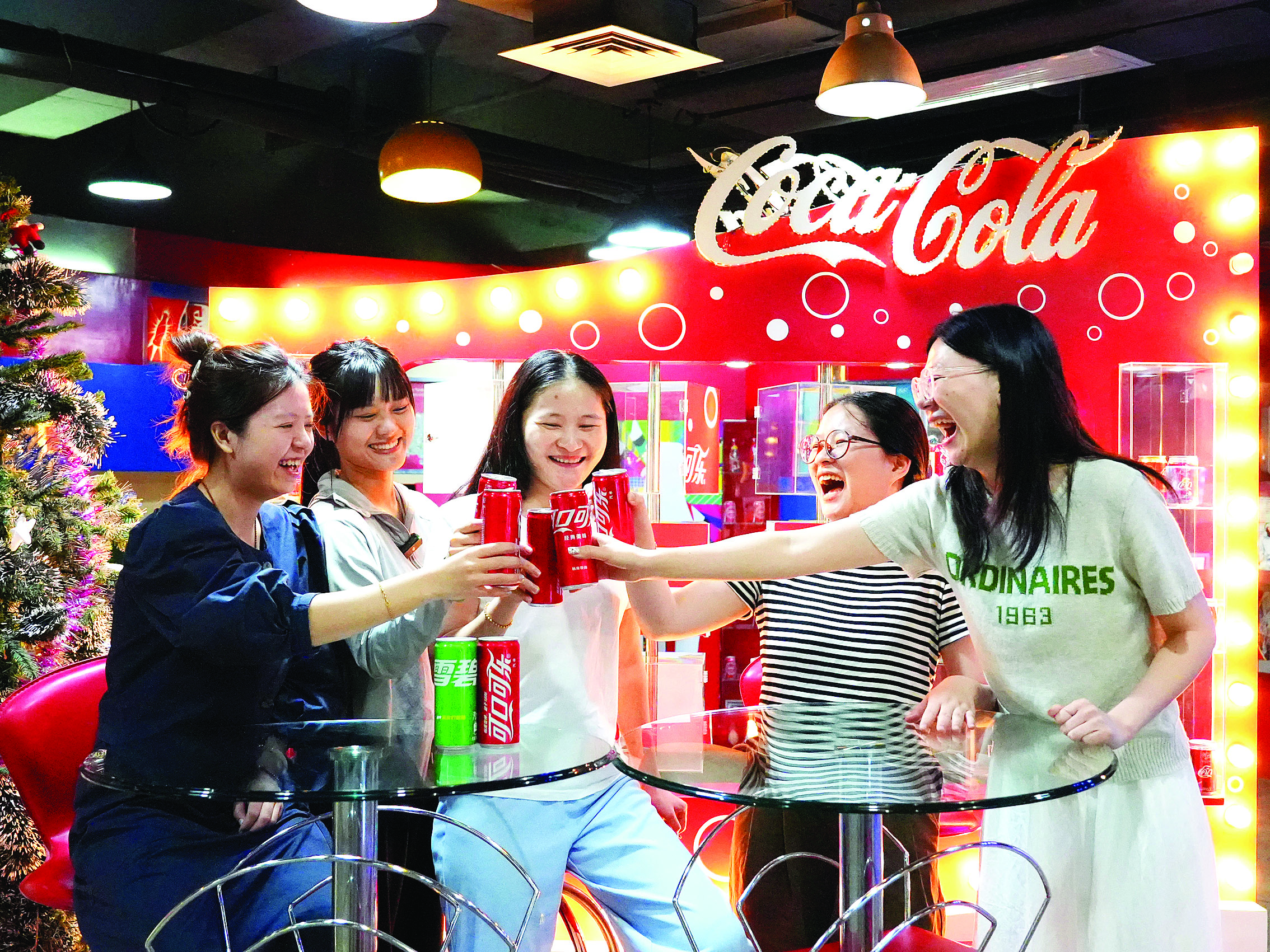游客在展廳暢飲可口可樂。