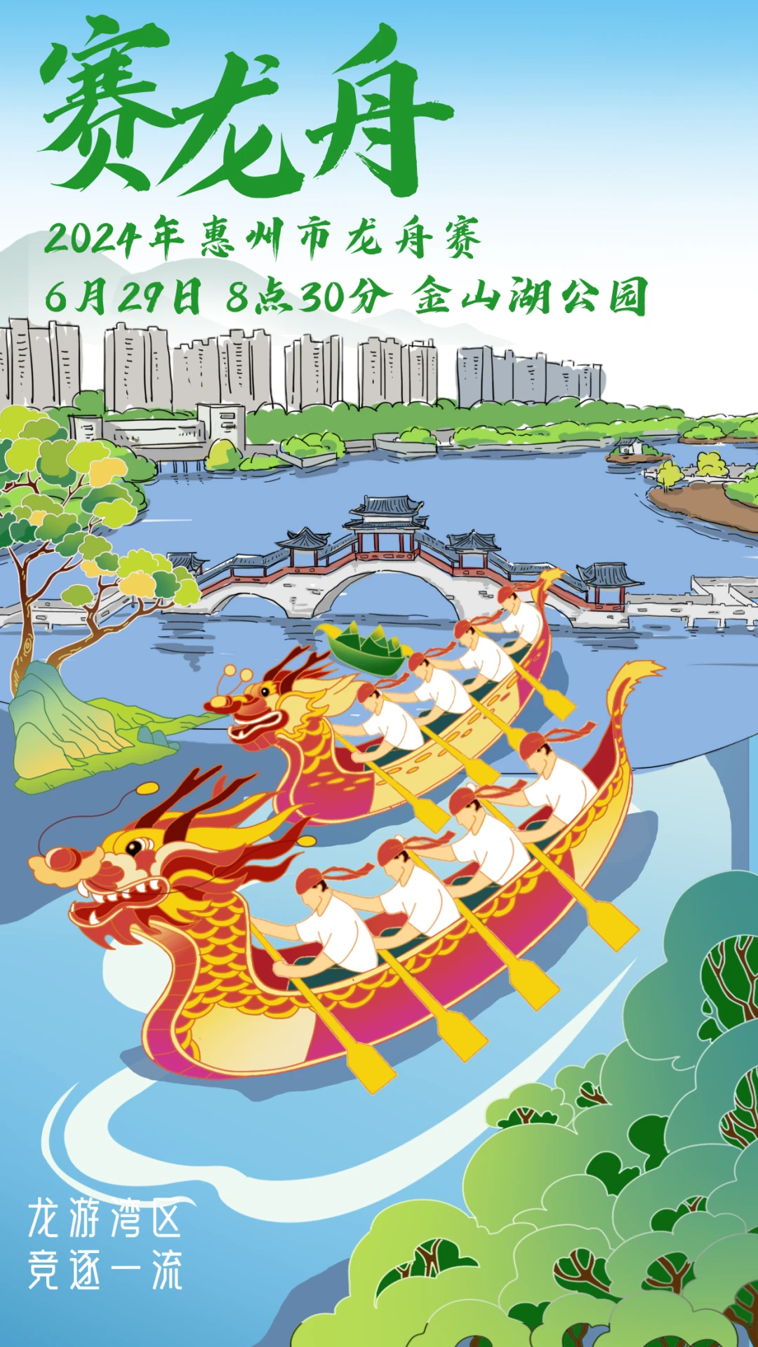 仲愷高新區(qū)龍舟隊(duì)口號(hào):賽龍奪魁,活力仲愷!