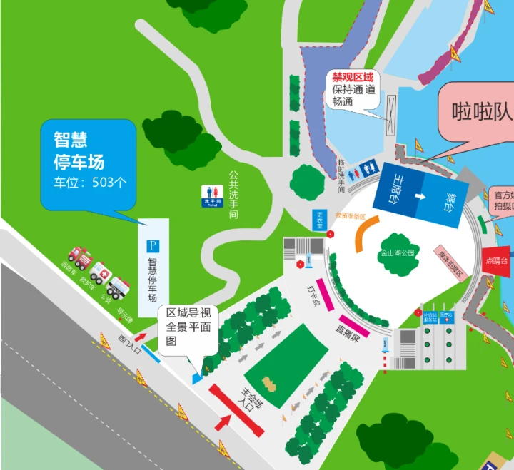 觀賽區(qū)位置:方直廣場(chǎng)前,可從金山湖公園入口進(jìn)入