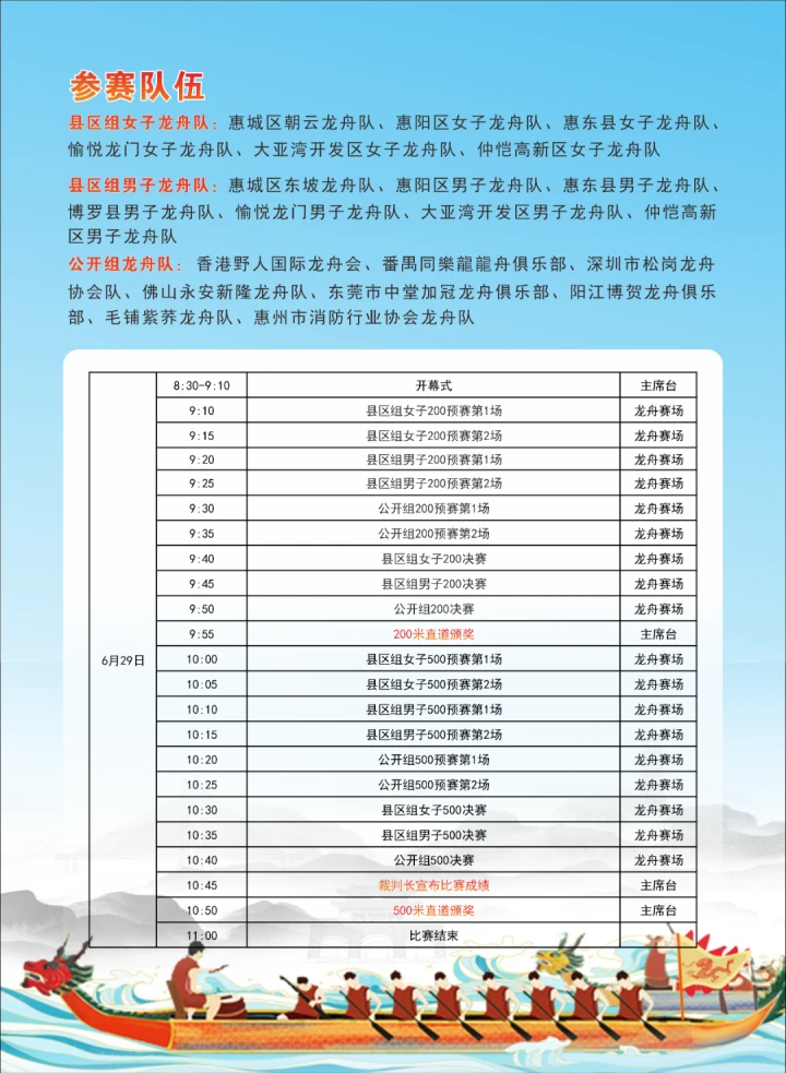 惠東縣龍舟隊(duì)口號(hào):奮勇爭(zhēng)先破浪行,山海惠東拔頭籌!