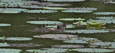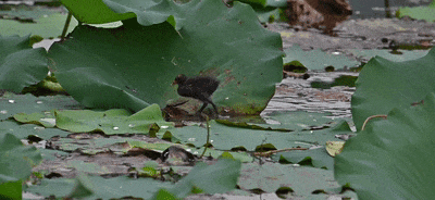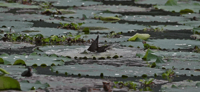 轉(zhuǎn)瞬之間,它們仿佛施展了水上輕功,輕盈而靈動(dòng)地穿梭于荷葉中。