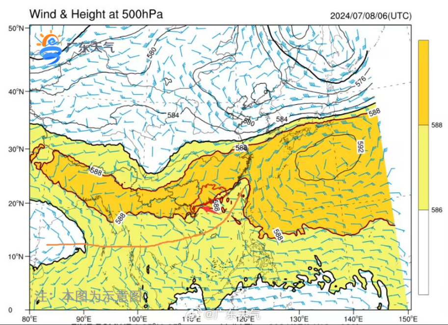 關(guān)注:①高溫炎熱,注意防暑防曬。②雖有副高罩著,但低層南風(fēng)較活躍,熱力不穩(wěn)定條件好,注意防御局地強(qiáng)對流。