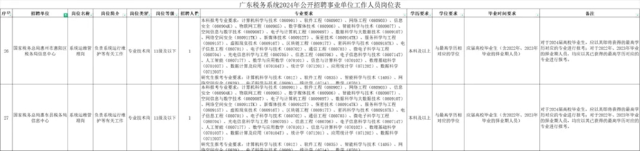 聘用人員為國(guó)家稅務(wù)總局廣東省稅務(wù)局系統(tǒng)事業(yè)編制工作人員,相關(guān)待遇按國(guó)家和廣東省有關(guān)政策規(guī)定執(zhí)行;其他城市崗位信息,可下載《崗位表》篩選查看。