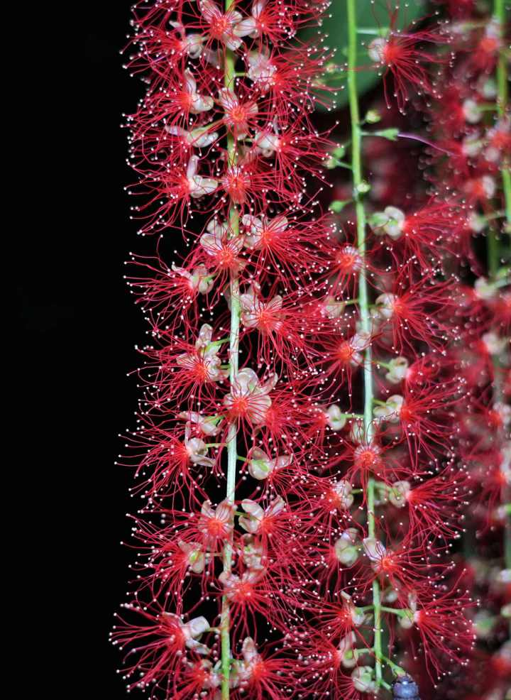 紅花玉蕊也被人稱之為“仲夏夜之花”,花期短暫,夜晚開放,第二天就凋謝了。通常下午4-5點開花,至翌日凌晨5-6點花落。花蕾從上往下依次綻放,常多朵花同時開放。單朵花暮開朝落,花期短暫;整棵樹花期約一周至半個月左右。開花時散發(fā)特殊氣味。