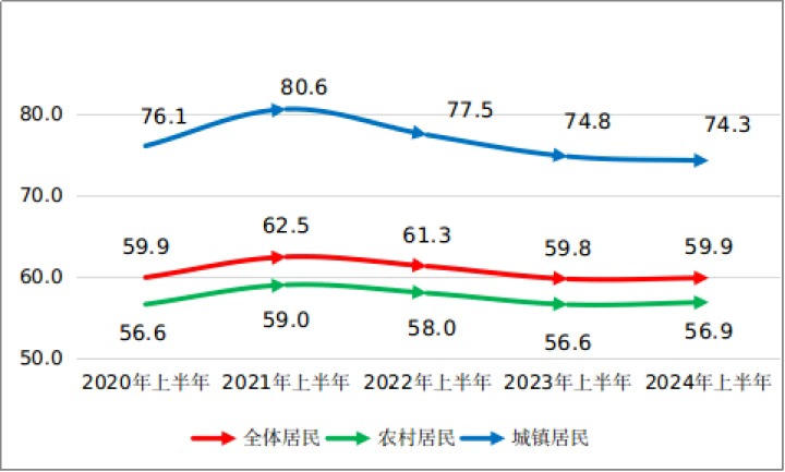 近五年惠州全體及城鄉(xiāng)居民上半年消費(fèi)傾向情況(單位:%)
