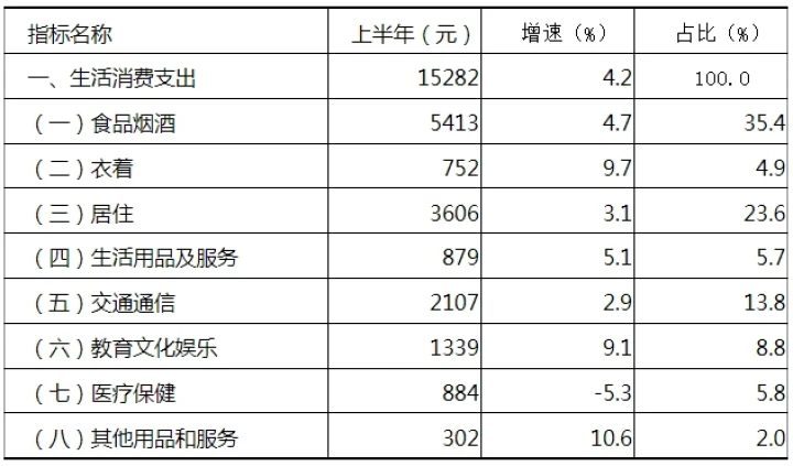 2024年上半年惠州居民消費(fèi)支出情況