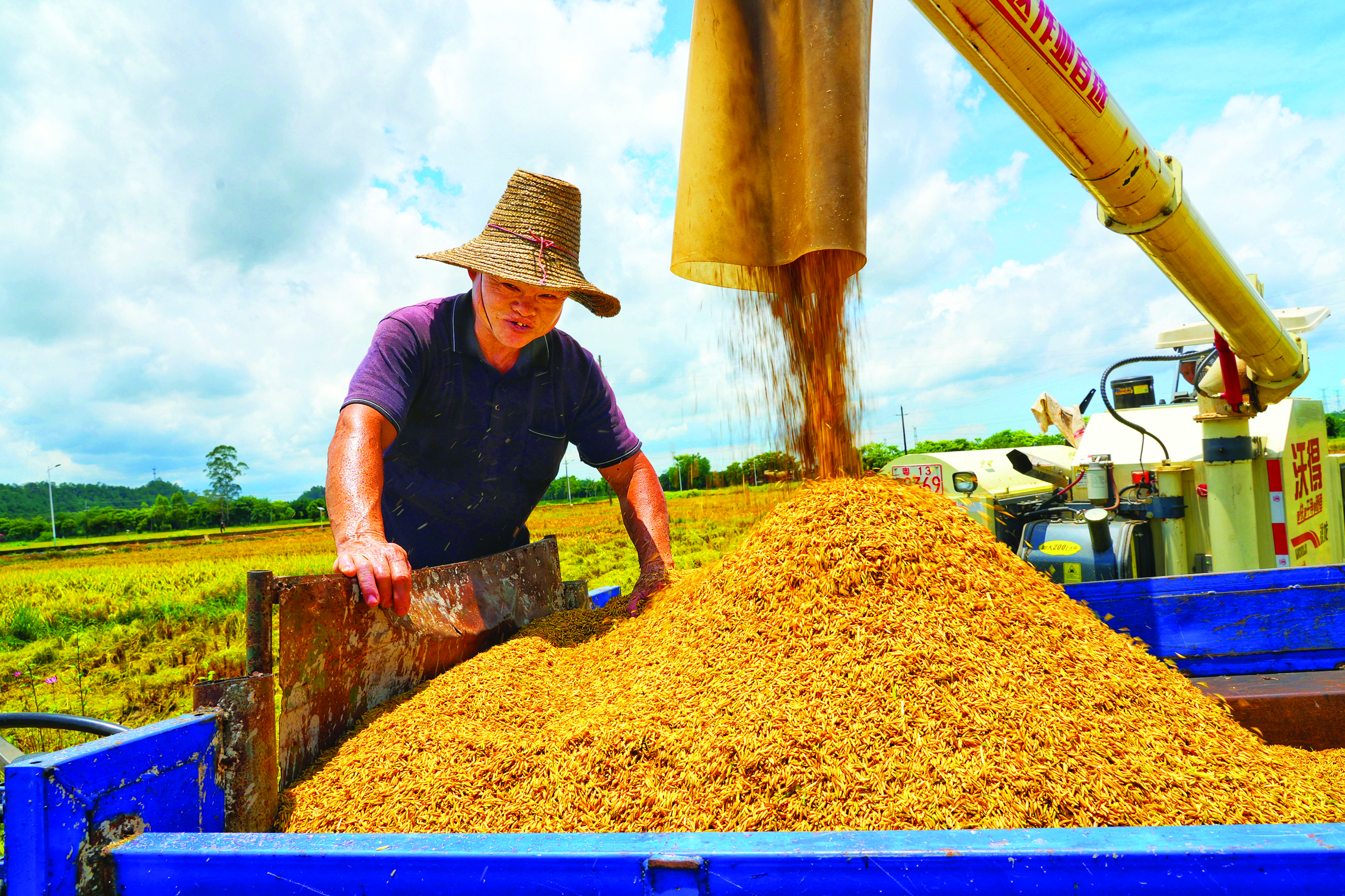 顆粒飽滿(mǎn)的稻谷裝滿(mǎn)了運(yùn)輸車(chē)輛。