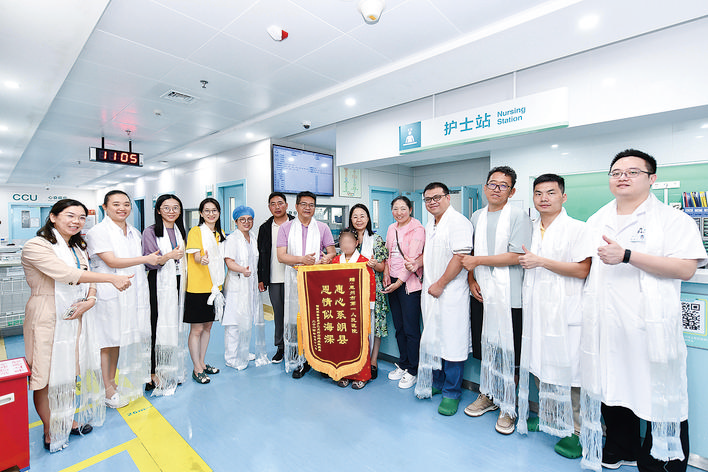 白瑪康珠一家給醫(yī)護團隊送上錦旗。惠州市第一人民醫(yī)院供圖