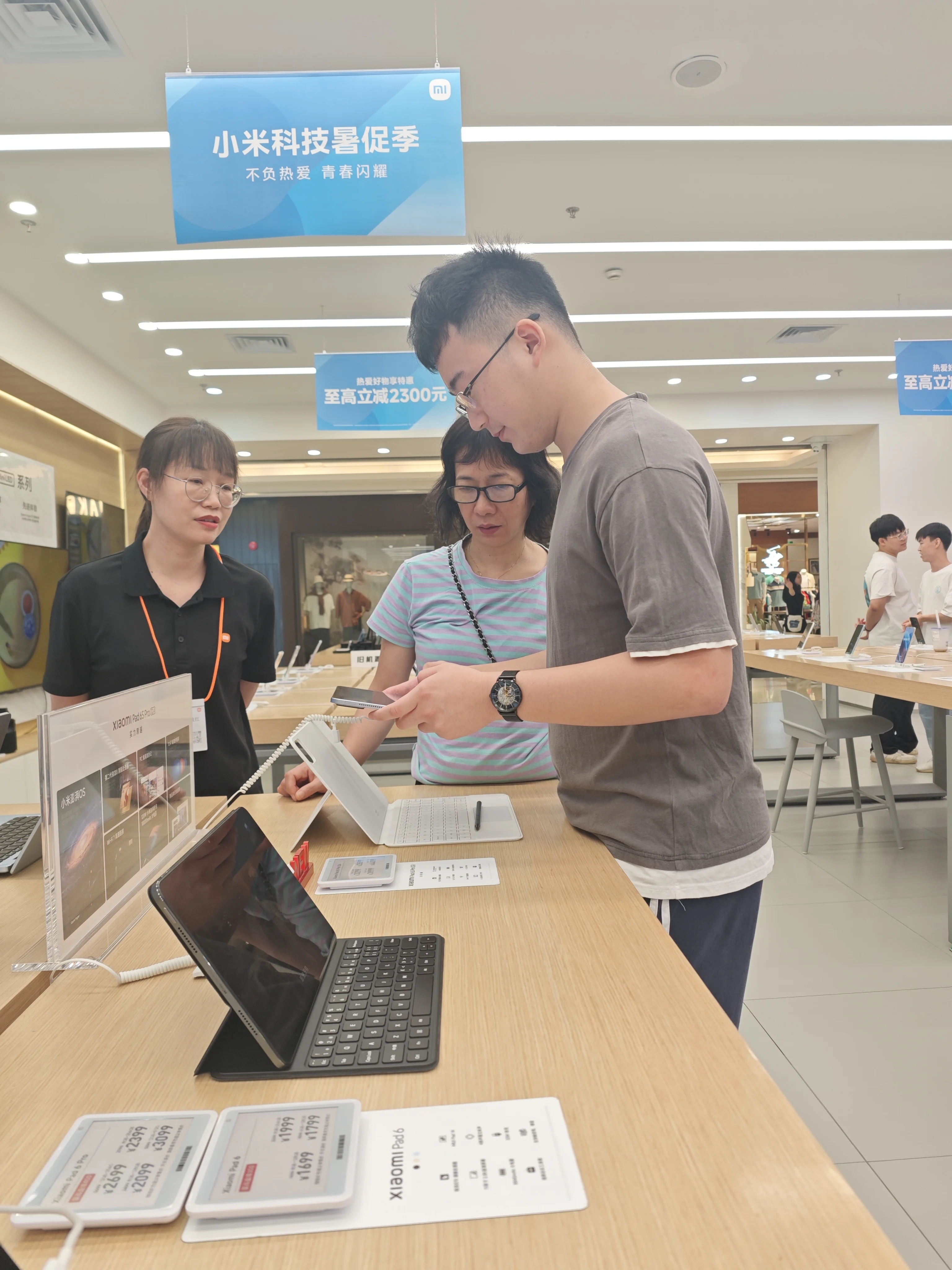 7月中旬,惠州華貿(mào)小米之家不少剛畢業(yè)的學(xué)生前來挑選心儀的手機(jī)。