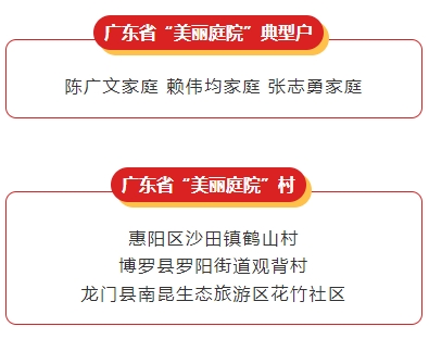 惠州日報訊 (記者馬海菊 通訊員李曉君)近日,省婦聯(lián)、省農(nóng)業(yè)農(nóng)村廳發(fā)布了《關(guān)于認(rèn)定廣東省“美麗庭院”戶、“美麗庭院”典型戶、“美麗庭院”村的通報》,我市共有60戶家庭被認(rèn)定為省“美麗庭院”戶,3戶家庭被認(rèn)定為省“美麗庭院”典型戶,3個村(社區(qū))被認(rèn)定為省“美麗庭院”村。