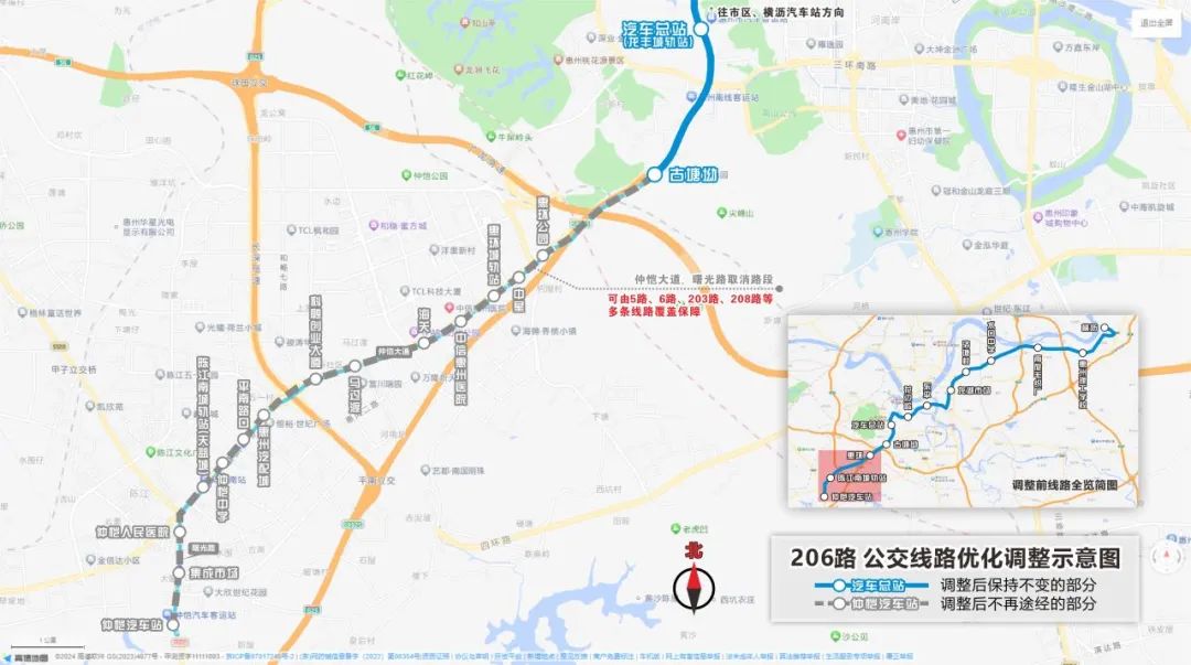線路調(diào)整:取消惠環(huán)公園至仲愷汽車(chē)站路段,線路截短至古塘坳。