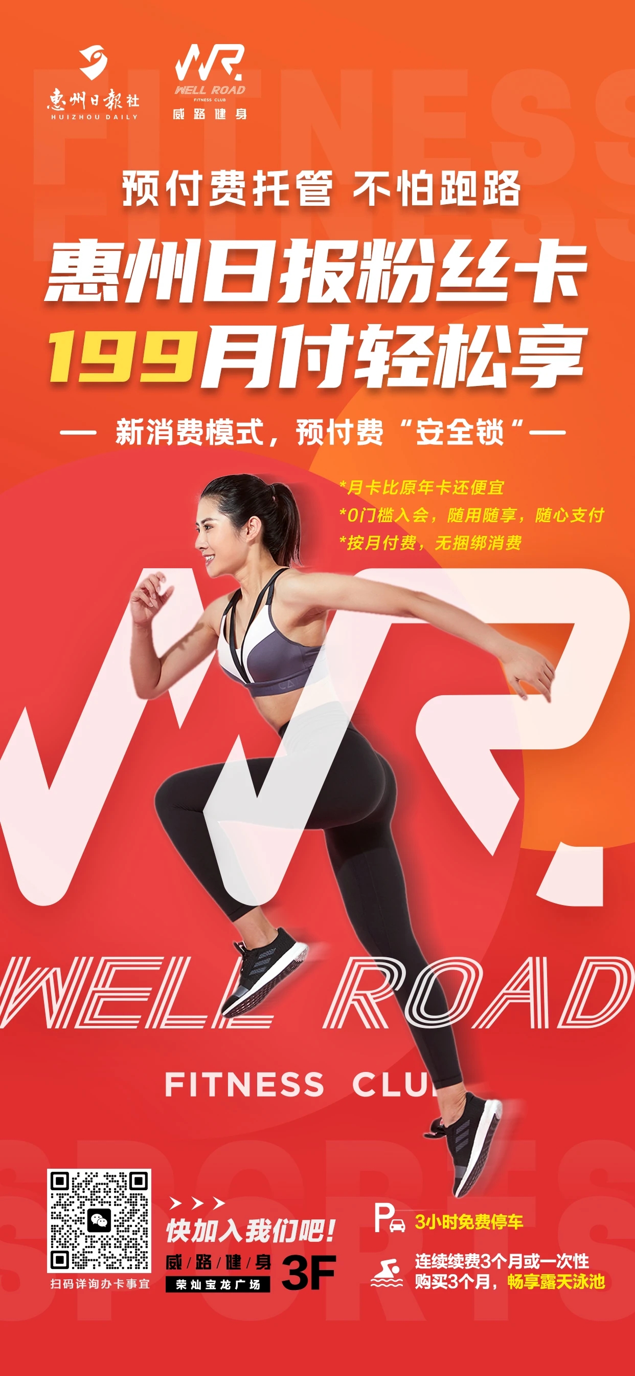 該會員卡享受年卡的權(quán)益,按月預(yù)付費(fèi),預(yù)付費(fèi)先由惠州日報社托管,在會員享受完服務(wù)后次月再劃款給威路體育,有效杜絕因健身房經(jīng)營不善倒閉或跑路導(dǎo)致會員損失的情況,而且會員卡不設(shè)門檻,會員可隨時解約退卡。