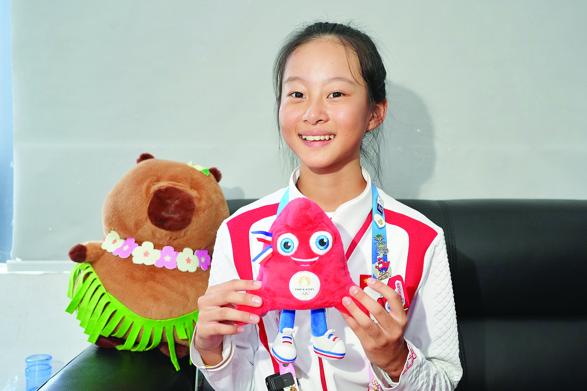穿著紅白相間的國家隊(duì)服,脖子上的運(yùn)動(dòng)員證掛著各種pin(奧運(yùn)徽章),手拿著巴黎奧運(yùn)會(huì)吉祥物“弗里熱”,鄭好好帶著招牌式燦爛笑容回到了夢開始的地方——惠州市體育運(yùn)動(dòng)學(xué)校的滑板場。惠州市文化廣電旅游體育局為鄭好好準(zhǔn)備了“卡皮巴拉”玩偶,“小孩姐”鄭好好瞬間變回了孩子的模樣,對玩偶愛不釋手。