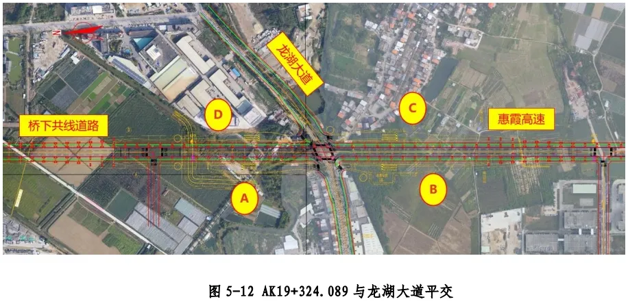 項目起點位于沿江路交叉,樁號 AK13+595.965,往東與江東一號路交叉,路線轉(zhuǎn)向南側(cè)前進,依次與青荔二路、青荔一路、青荔四路、洛塘一路、龍湖大道、紅嶺路、聯(lián)發(fā)東路、新聯(lián)東路、中心大道、水青路、惠澤大道、合新一路、合生大道(機場路)、新光路、新樂路交叉,終點與群樂路交叉,終點樁號 AK24+946.807(與惠霞高速樁號一致)。