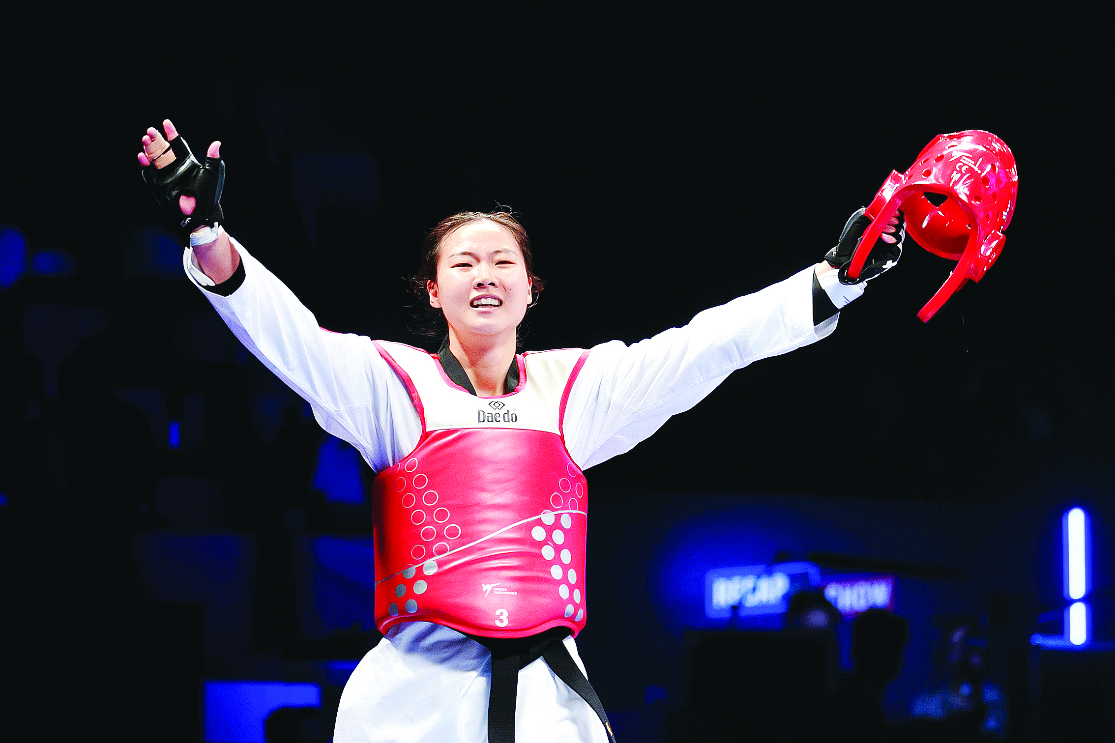 在跆拳道混合團(tuán)體表演賽中奪冠