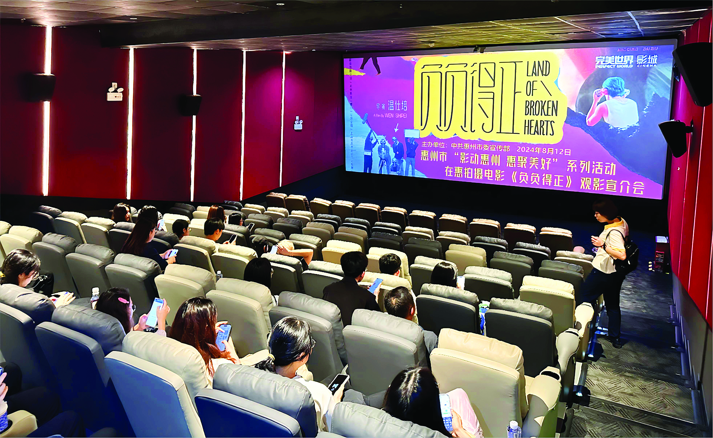 “惠州有很多場(chǎng)景很適合拍電影,也有很多很好的影片在惠州拍攝,《負(fù)負(fù)得正》就是其中一部。”完美世界影城華南區(qū)域總經(jīng)理黃文君說,秉持著給更多觀眾推薦惠州的初心,完美世界影城(惠州吉之島店)作為承辦方舉行了本次觀影會(huì)。不僅如此,在排片方面,影城對(duì)在惠拍攝影片更為側(cè)重,每天不少于6場(chǎng)。“希望更多觀眾走進(jìn)影院,觀看在惠州拍攝的影片。”