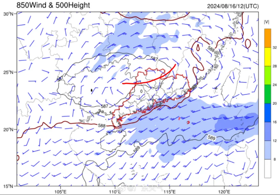 17~18日,副高略有加強(qiáng),但低渦繼續(xù)東移,對廣東影響仍維持,降雨區(qū)將有所北抬。