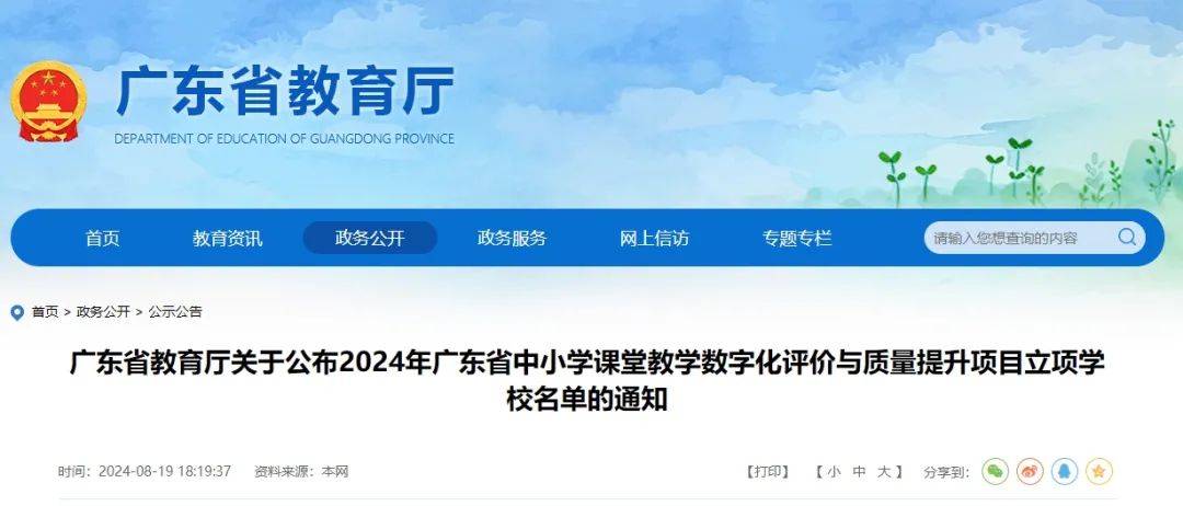 快看!省教育廳公布2024年廣東省中小學課堂教學