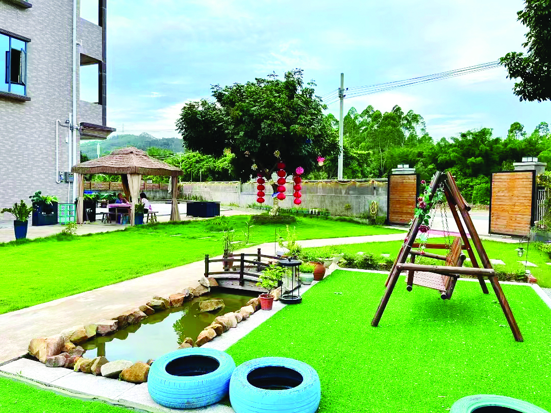 惠城區(qū)橫瀝鎮(zhèn)墨園村因地制宜設(shè)置兒童活動(dòng)廣場(chǎng)。