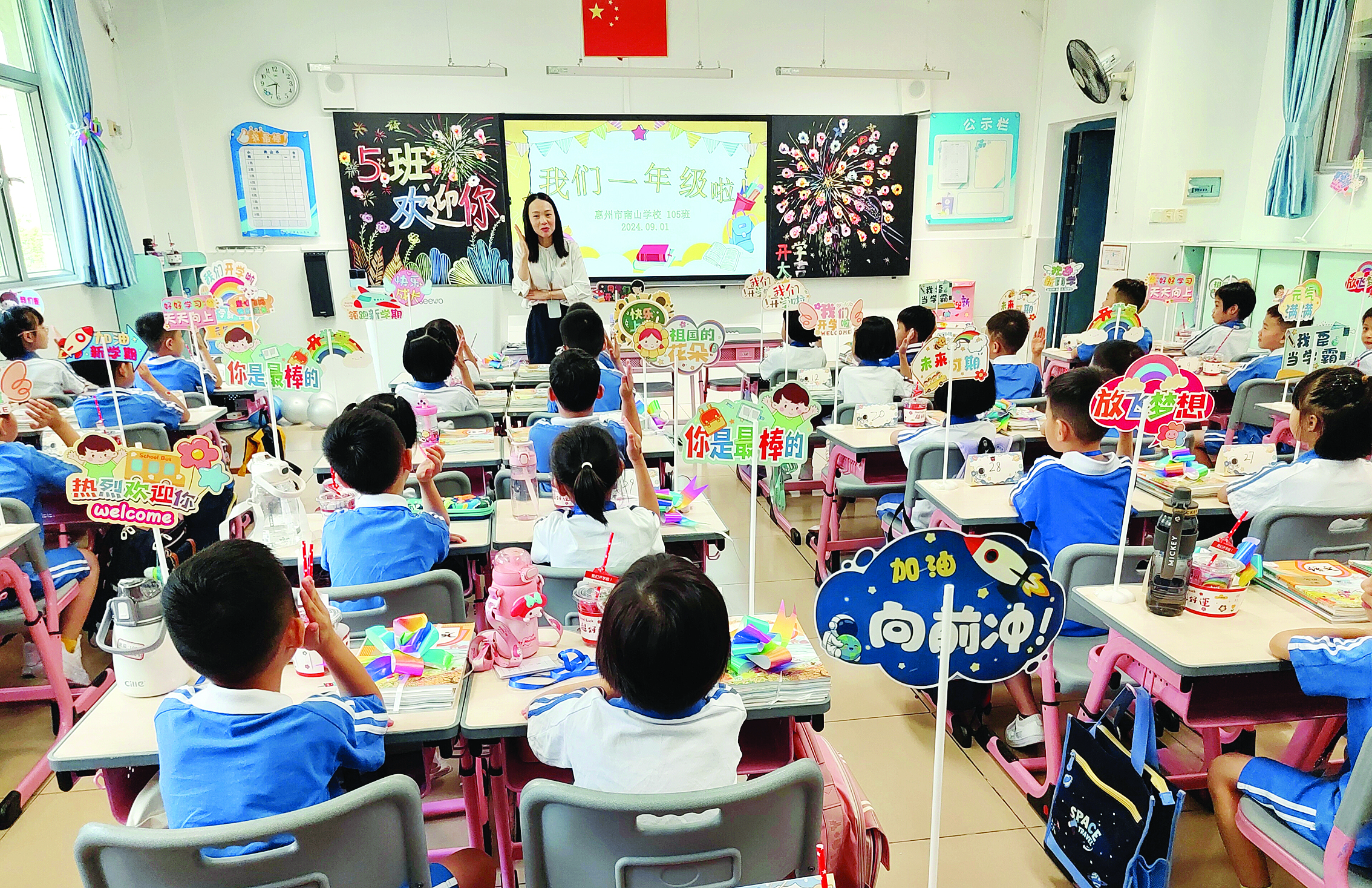 開(kāi)學(xué)第一天,惠州市南山學(xué)校迎新儀式感滿滿。 惠州日?qǐng)?bào)記者葉麗莎 通訊員梁勇 攝