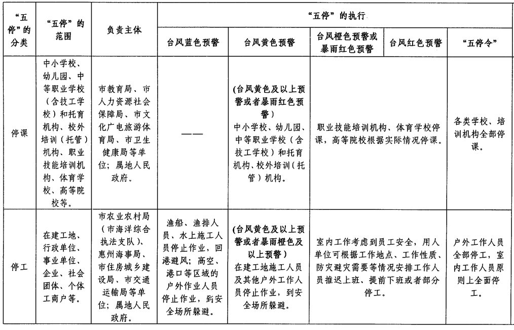 停課/停工具體對應(yīng)情況如下表: