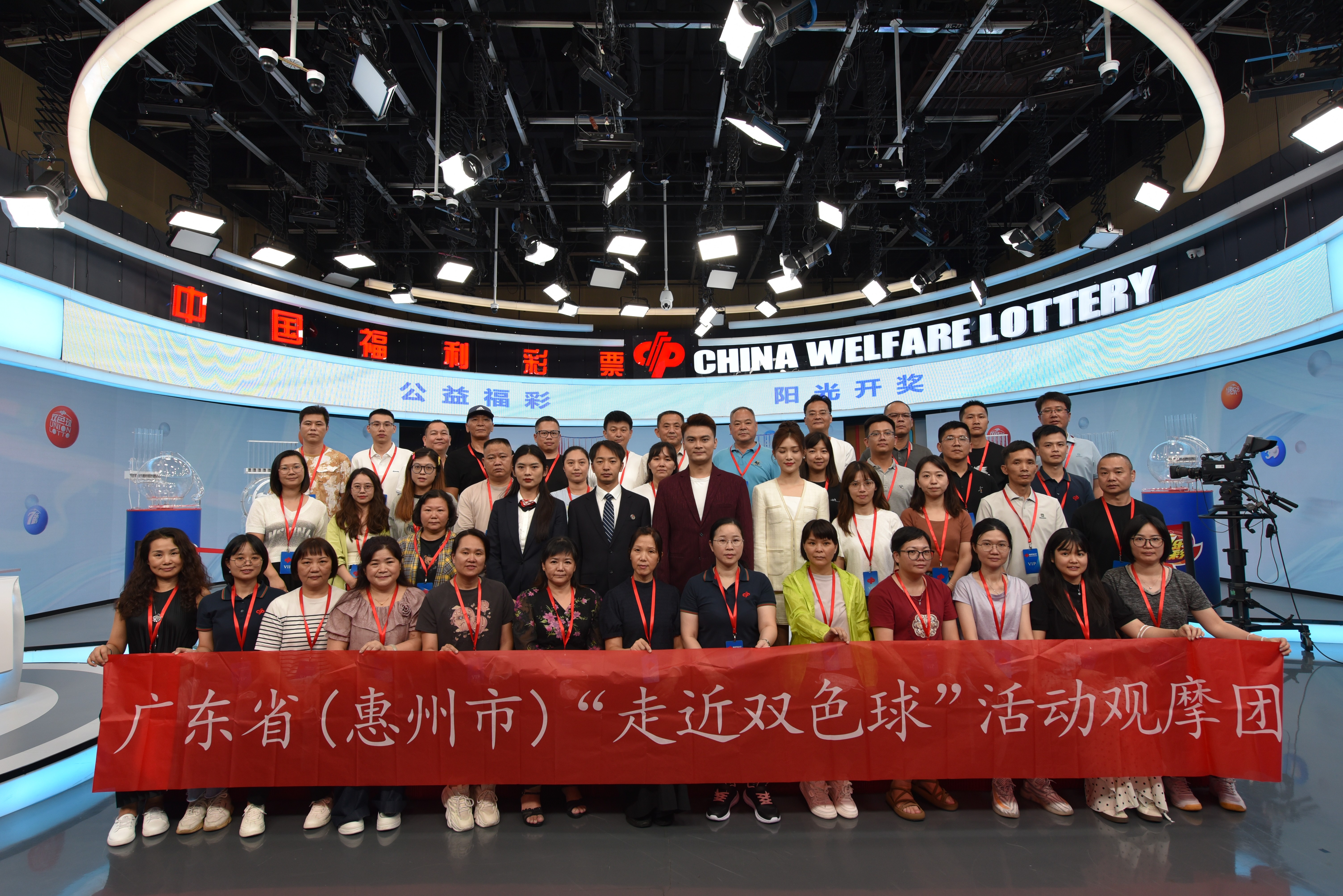 觀摩團與現(xiàn)場工作人員合影留念。 惠州福彩供圖