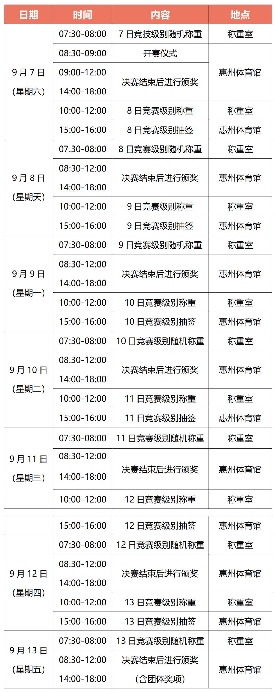 將于9月7日至13日在惠州體育館精彩上演