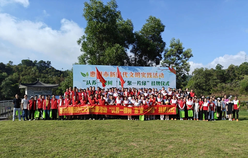 9月1日,惠州市新時代文明實踐活動 “認養(yǎng)一棵樹 ‘惠’聚一片綠”掛牌儀式在市區(qū)桃花源景區(qū)舉行,吸引了約200人參加。
