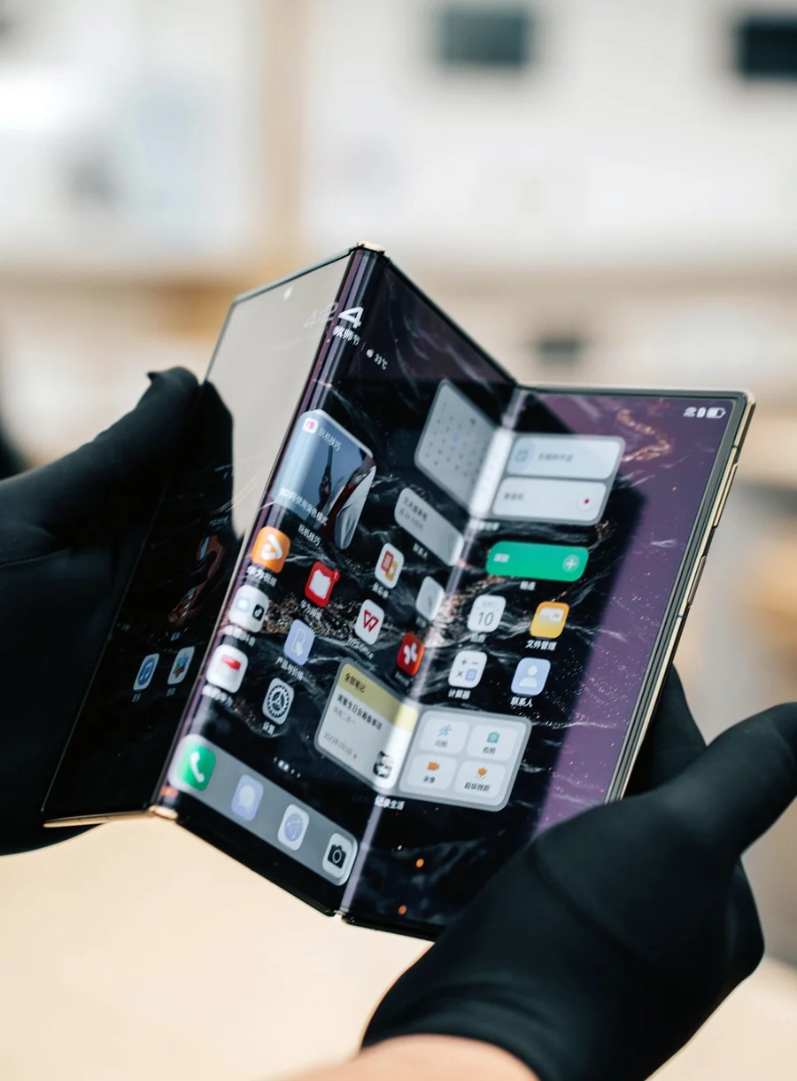 9月10日下午,在惠州華貿(mào)天地舉行的一場發(fā)布會上,三折疊屏手機華為Mate XT非凡大師揭開了神秘面紗。