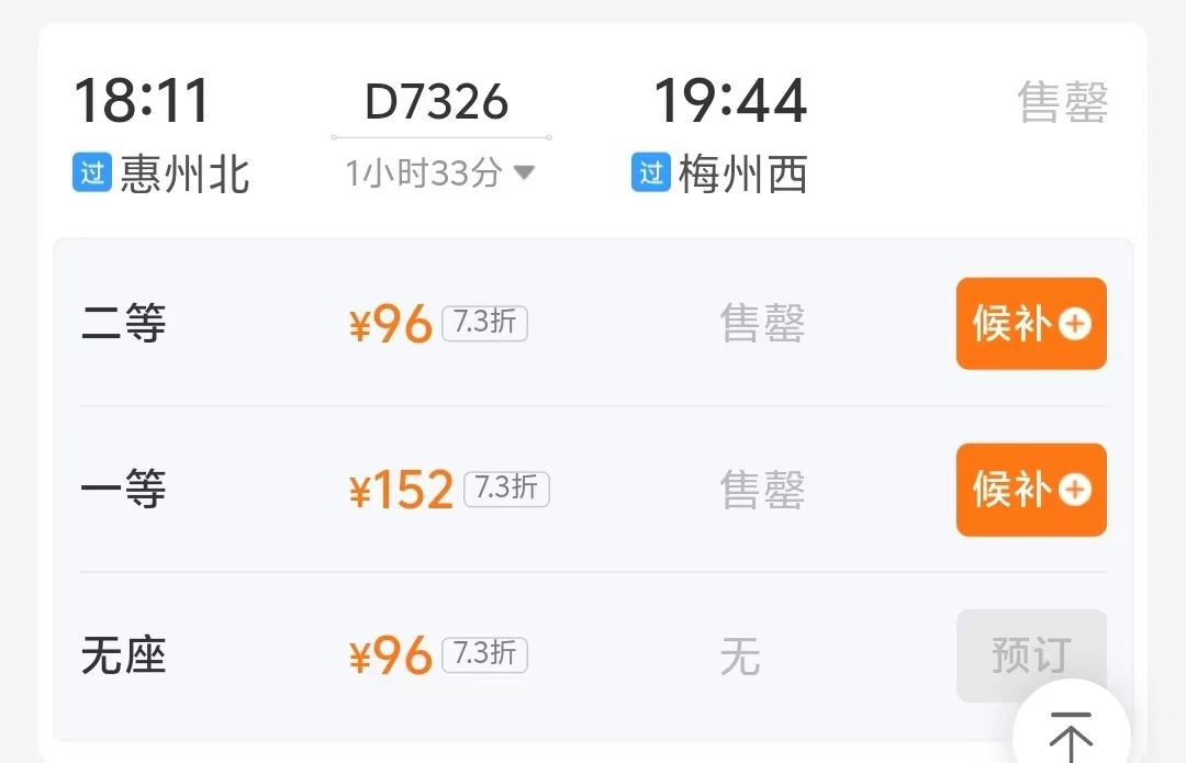 目前部分車次已售罄