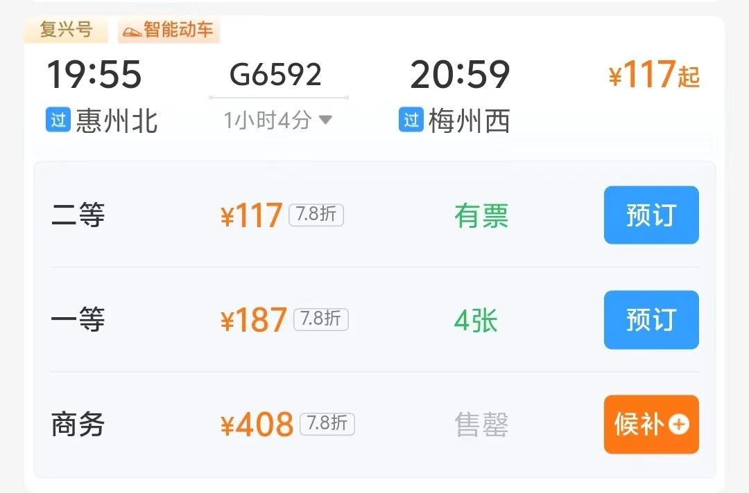 梅州西站至深圳北站最快1小時(shí)36分
