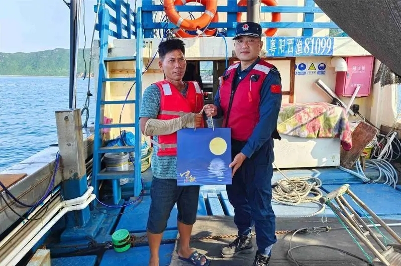 此外,惠州海警局執(zhí)法員利用巡邏執(zhí)勤間隙,為轄區(qū)漁民群眾送去自制的月餅和節(jié)日祝福,在與他們拉家常的同時(shí),提醒他們要注意海上作業(yè)安全,如遇險(xiǎn)情要及時(shí)撥打95110海上報(bào)警電話求助。