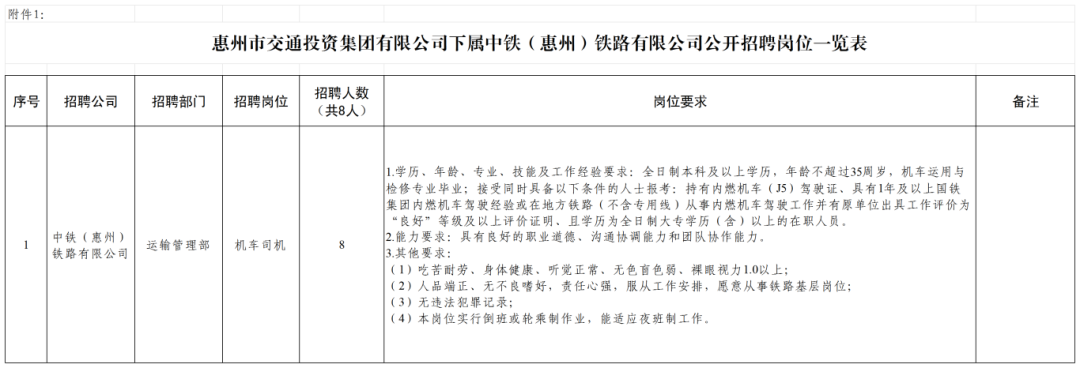 惠州市交通投資集團(tuán)有限公司下屬中鐵(惠州)鐵路有限公司