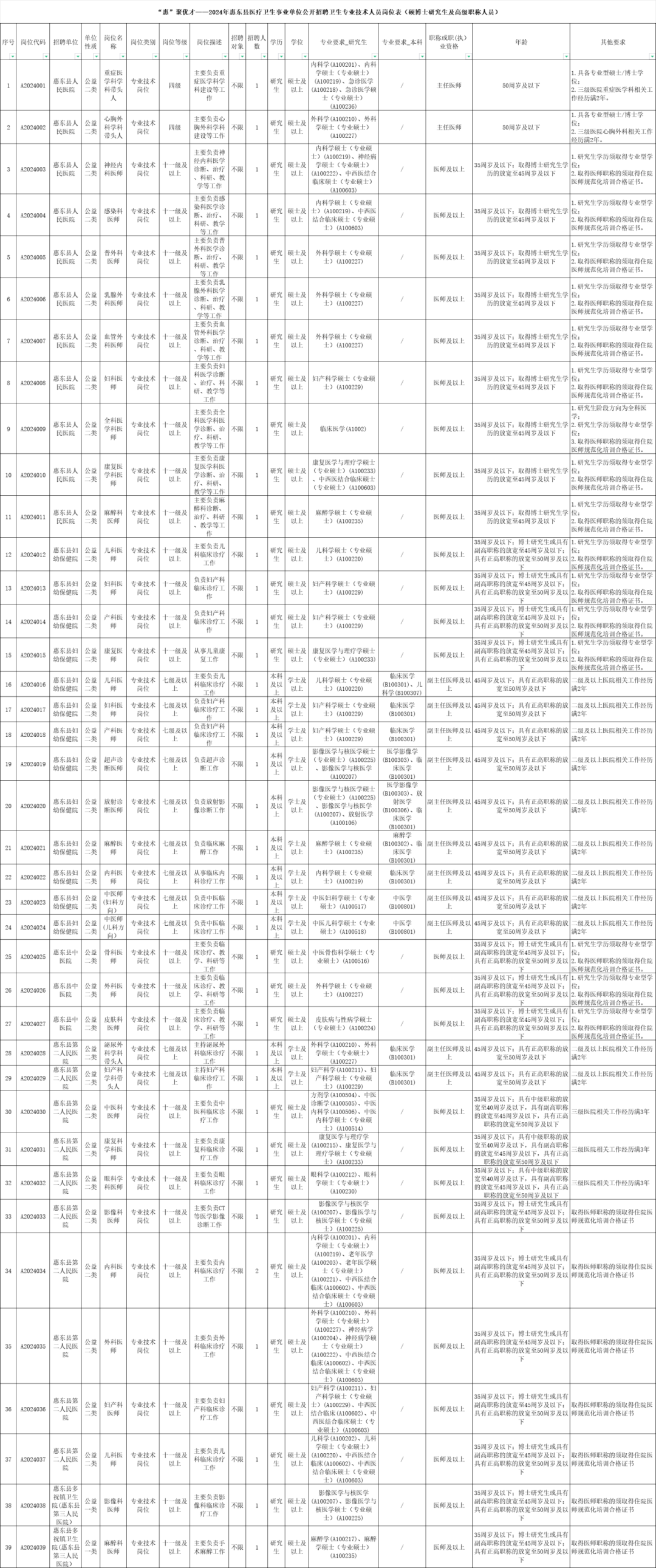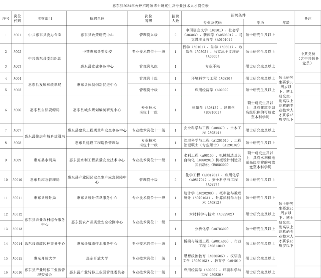 惠州市惠東縣2024年公開招聘碩博士研究生及專業(yè)技術(shù)人才招聘對象和數(shù)量