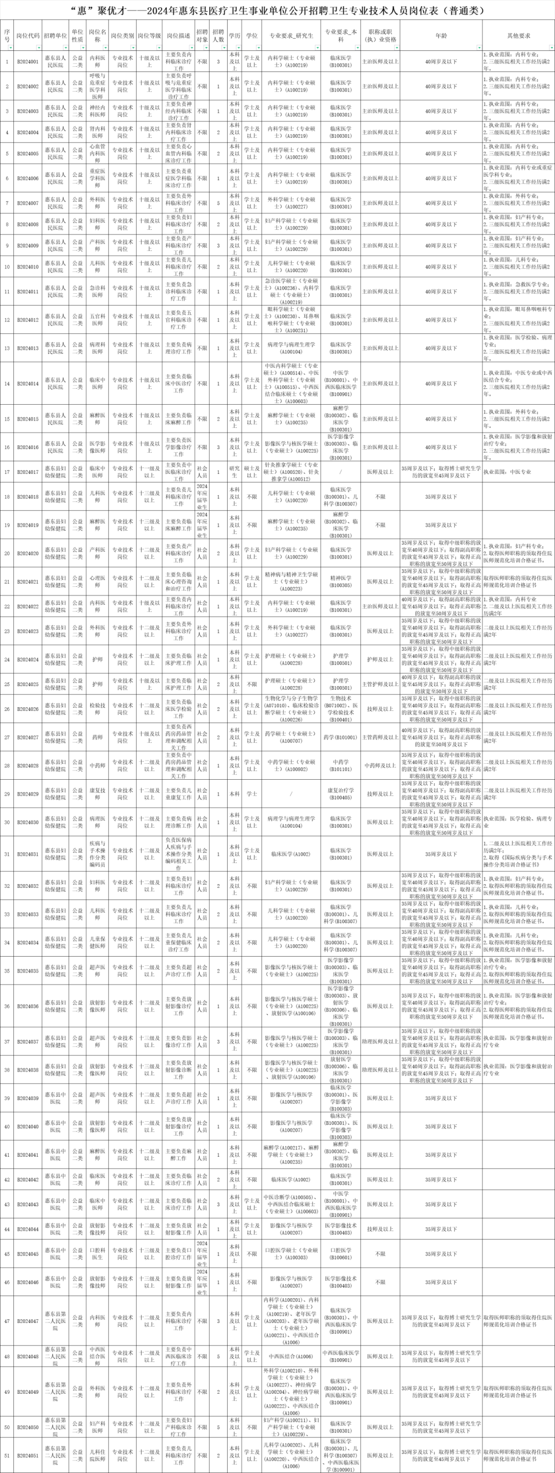 2024年惠東縣醫(yī)療衛(wèi)生事業(yè)單位公開招聘衛(wèi)生專業(yè)技術(shù)人員