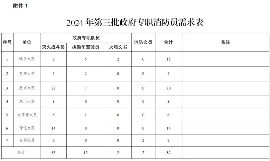 惠州市消防救援支隊2024年第三批政府專職消防員招聘85人