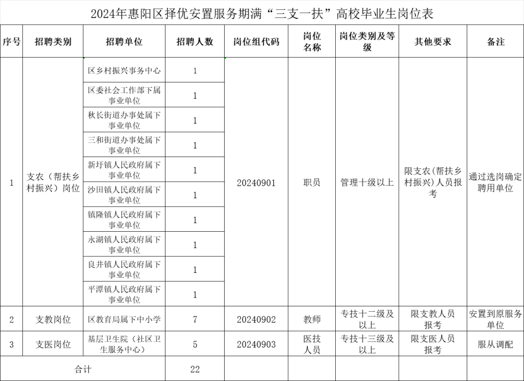 惠陽區(qū)擇優(yōu)安置服務(wù)期滿“三支一扶”高校畢業(yè)生