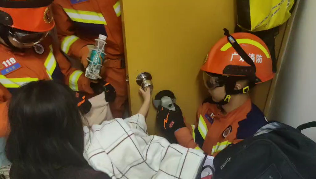 現(xiàn)場消防員了解得知,被困小孩因貪玩導(dǎo)致大拇指卡在門鎖中無法動(dòng)彈,稍微的行動(dòng)都會(huì)導(dǎo)致小孩強(qiáng)烈的劇痛,指揮員迅速組織救援人員對門鎖進(jìn)行破拆。